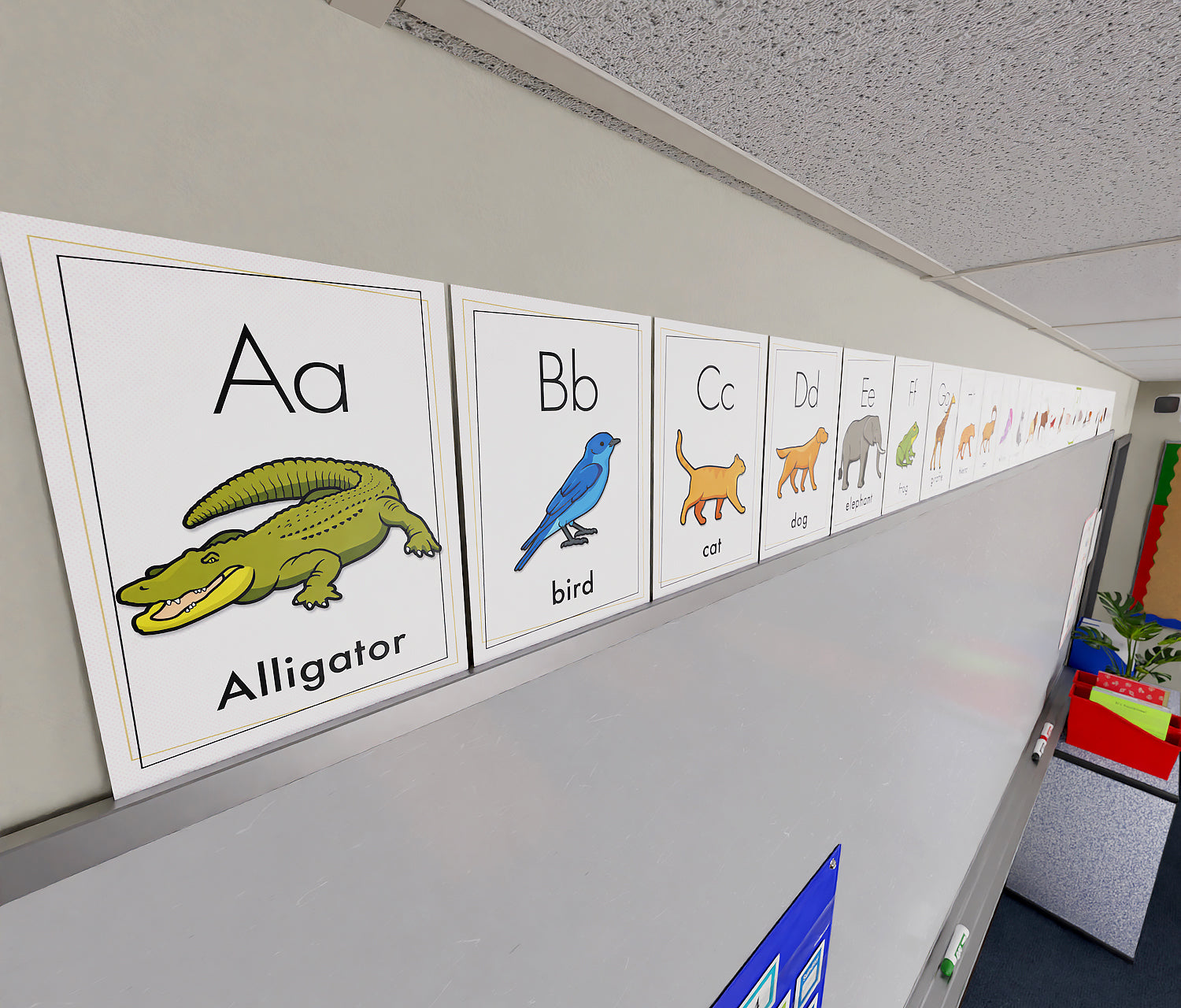 Educational Value: Use these alphabet posters as a valuable teaching resource for letter recognition, phonics instruction, and spelling activities. They provide a visually stimulating backdrop for learning.